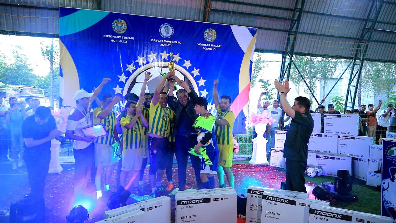 Кўтаринки кайфиятда ташкил этилган футбол турнири барчада яхши таассурот қолдирди.Қизғин ва муросасиз тарзда кечган мусобақанинг ғолиб ва совриндорлари аниқланди.