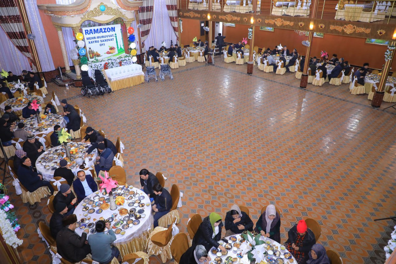 Бугун Косонсой туманидаги "Ўзбегим" тантаналар мажмуасида Ўзбекистон Мусулмонлар идораси ташаббуси билан туман ҳокимлиги ва туман "Инсон" ижтимоий хизматлар маркази ҳамкорлигида тумандаги 200 нафар кам таъминланган, ижтимоий ҳимояга мухтож, ногиронлиги бўлган шахсларга ифторлик дастурхони ёзилди.