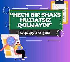 Adliya organlari va muassasalarida bugungi kunda fuqarolarning huquqlarini himoya qilish, ularning huquqiy savodxonligini oshirish hamda joylarda fuqarolarga bepul birlamchi huquqiy ko‘mak berish maqsadida joriy yilning 1-martidan 31-mart kuniga qadar “Hech kim hujjatsiz qolmaydi” huquqiy aksiyasi o‘tkazilmoqda. Ushbu aksiyadan ko‘zlangan asosiy maqsad fuqarolarning shaxsini tasdiqlovchi hujjati (pasport), tug‘ilganlik haqida guvohnomasi, nikoh tuzilganligi, nikohdan ajralganlik va o‘lim qayd etilganligi haqidagi hujjatlarini olish yoki qayta tiklashda fuqarolarga amaliy yordam berishga qaratilgandir.