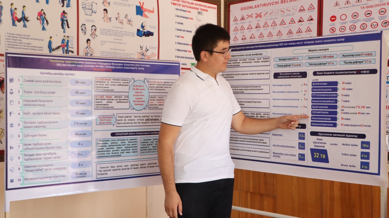 Вазирлар Маҳкамасининг 450-сон қарори билан жорий йил сентябрь ойидан ҳар бир ҳоким ёрдамчиси томонидан ўз фаолиятининг самарадоrрлигини янада ошириш бўйича концепция ишлаб чиқилиши, маҳаллаларда ҳар томонлама муҳокама қилиниши ҳамда тасдиқлаш учун туман ҳокимига киритилиши белгиланган.