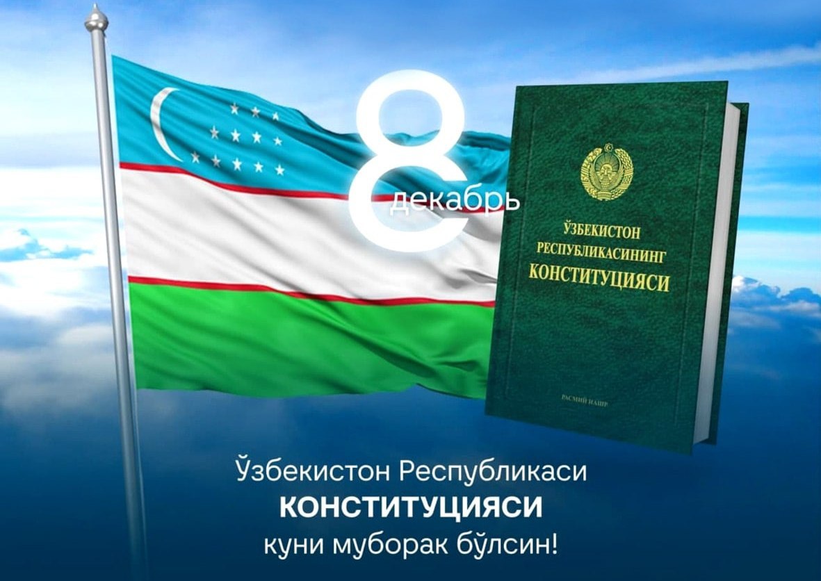 ▫️Сиз, азизларни мамлакатимиз ҳаётидаги улуғ тарихий сана — Ўзбекистон Республикаси Конституцияси қабул қилинганининг 31 йиллик байрами билан чин қалбимиздан самимий муборакбод этамиз!