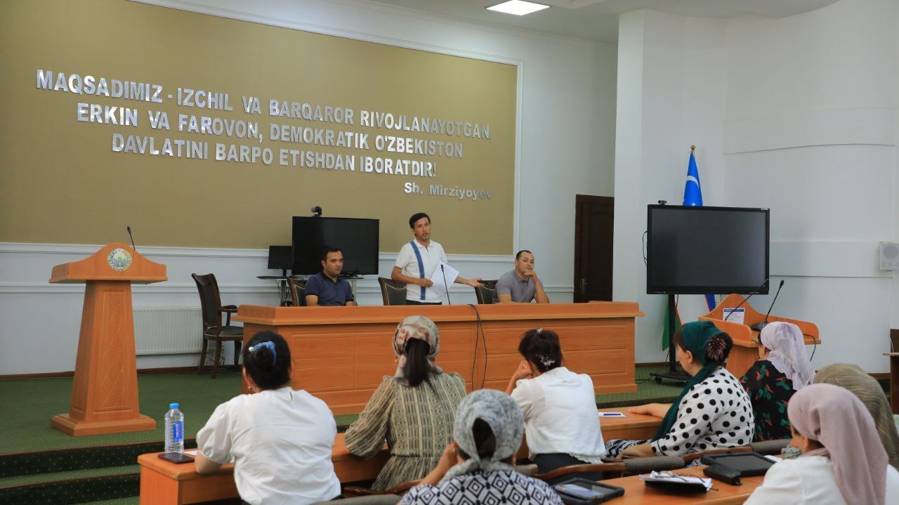 Унга кўра, “Аёллар дафтари”га олинган хотин-қизларга кўрсатилган ёрдамларни “Аёллар дафтари” платформасига киргизиш ҳолати ҳамда Ўзбекистон Республикаси Президентининг «Маҳаллаларда ижтимоий хизматларни кўрсатиш ва ижтимоий ҳимояга муҳтож оилаларга ёрдам бериш тизимини янги босқичга кўтариш ҳамда хотин-қизларни касбга ўргатиш ишларини янада жадаллаштириш» тўғрисидаги ПҚ-300-сонли қарорининг тумандаги ижроси таҳлиллар асосида муҳокама этилиб, камчиликларни бартараф этиш юзасидан аниқ вазифалар белгилаб олинди.