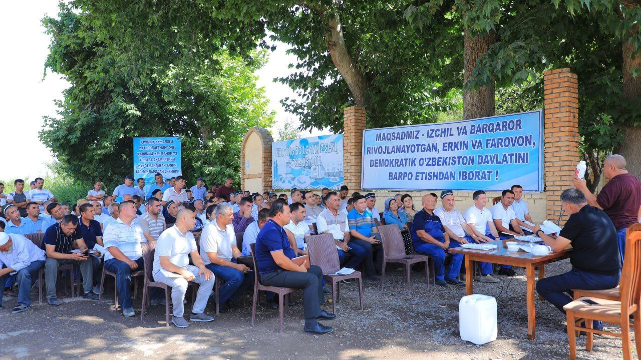 Ўрганиш якунларига кўра ўтказилган муҳокама йиғилишида вилоят ҳокимининг ишчи гуруҳи, туман секторлари раҳбарлари, тумандаги қишлоқ хўжалиги корхона ва ташкилотлари раҳбарлари, ММТП раислари, пахтачиликка ихтисослаштирилган фермер хўжаликлари раҳбарлари иштирок этдилар.