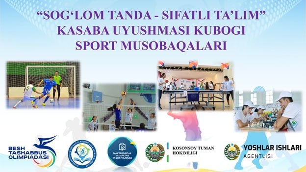 Ўқитувчиларнинг жисмоний фаоллиги даражасини ошириш, таълим муассасаларидаги спорт секциялари ва тўгараклари фаолиятини ривожлантиришга кўмаклашиш, ўқитувчиларнинг бўш вақтларида спорт билан шуғулланишлари учун шароит яратиш мақсадида, «Беш ташаббус олимпиадаси» доирасида Косонсой туман халқ таълими бўлими тасарруфидаги таълим муассасалари ўқитувчилари ўртасида “Соғлом танда - сифатли таълим” шиори остида Касаба уюшмаси кубоги спорт мусобақаларига старт берилди