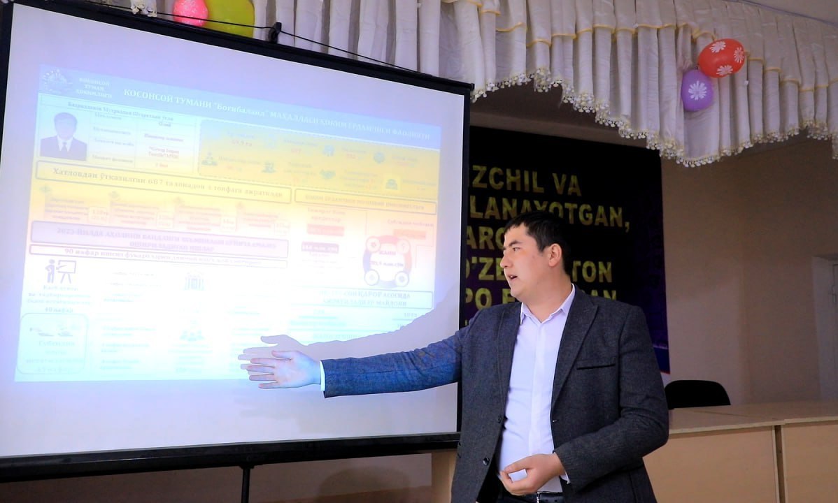 Косонсой туманида мавжуд 59 нафар ҳоким ёрдамчилари томонидан 2022 йилда амалга оширилган ишлар ва 2023 йилги режалари тўғрисида маҳалла фуқаролари олдида ҳисобот берилмоқда.